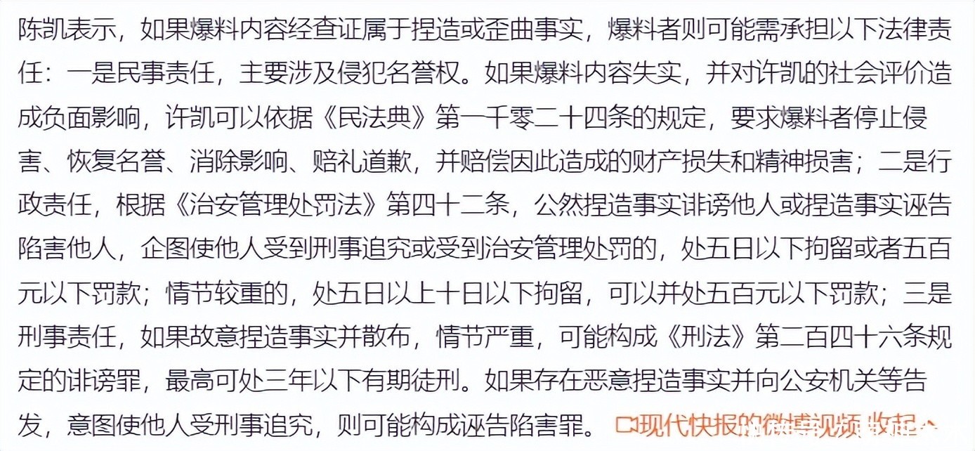 当然,如果爆料是假的,爆料者也要承担责任,现在就看许凯方面的回应了。